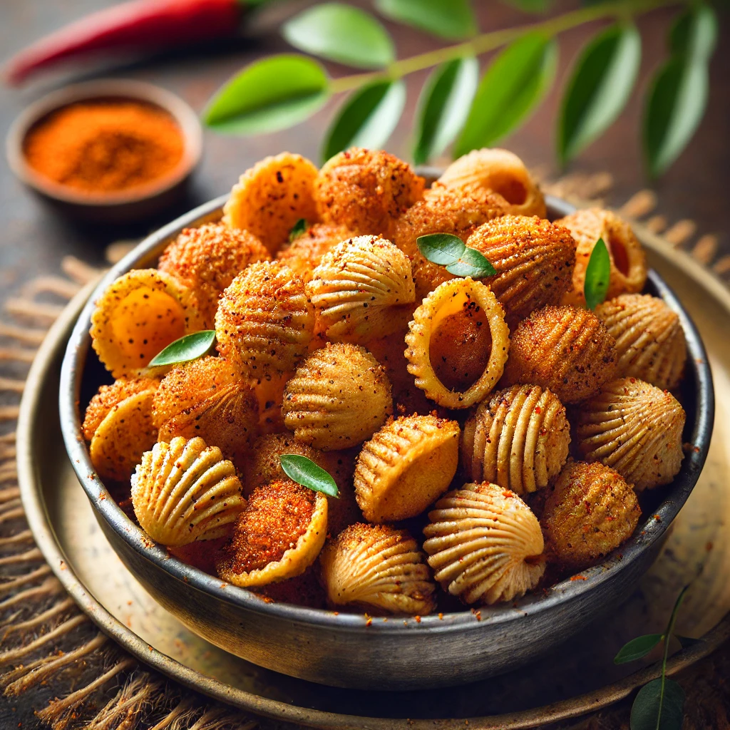 Karam Gavvalu is a conventional South Indian bite known for its crunchy surface and zesty flavor. At **RKFoods**, we get ready Karam Gavvalu utilizing excellent fixings like wheat flour, a mix of fragrant flavors, and a dash of bean stew for that ideal kick. Formed like little shells and seared to brilliant flawlessness, these firm chomps are a great mix of flavor and crunch. Whether you’re searching for a break time nibble, a happy treat, or a hot ally for your dinners, **RKFoods**’ Karam Gavvalu guarantees genuine taste and fulfillment in each chomp.